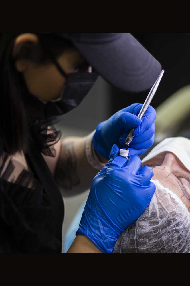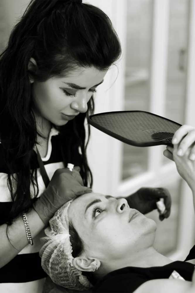 Microblading is very superficial and painless, and we use numbing creams in the eyebrow area before doing the work.
